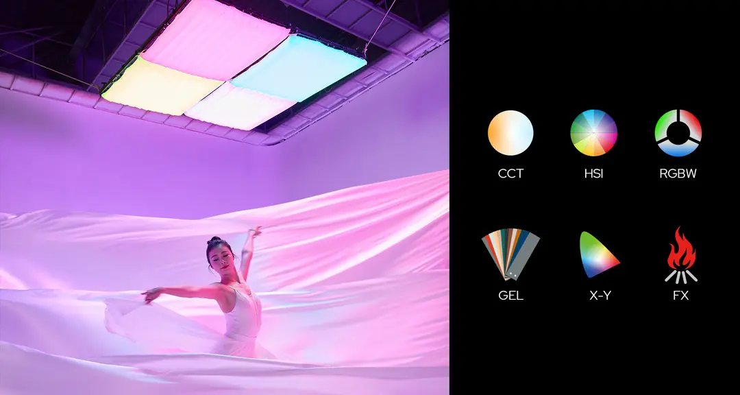 96 CRI ve 98 TLCI gibi yüksek renk oluşturma puanları, profesyonellerin her zaman doğru renk çıktısı almasını sağlar. F200R, CCT, RGBW, HSI, GEL, XY ve FX modlarıyla renk üzerinde tam kontrol sağlar. Önceki sadece çift renkli seride olduğu gibi, F200R de %0,1'lik artışlarla %0 ila %100 arasında değişken yoğunluk ve dört karartma eğrisi (doğrusal, S-eğrisi, üstel ve logaritmik) sunar.