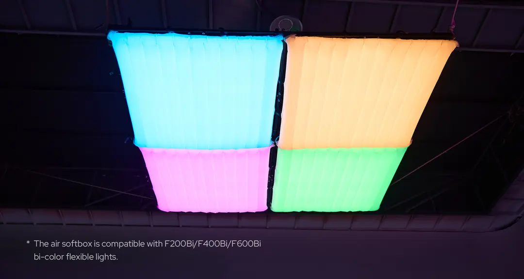 Her boyuta özel olarak tasarlanmış yeni şişirilebilir air softbox, etek ve ızgara ile birlikte gelmektedir. Kavisli tasarımı, ışığı yumuşatarak daha dengeli bir dağılım sağlar. Kolayca çıkarılabilen ve hızlı bir şekilde şişirilip söndürülebilen yapısı sayesinde, her kurulum için esnek ve verimli ışık şekillendirme imkanı sunar.